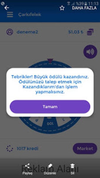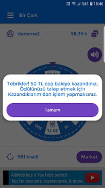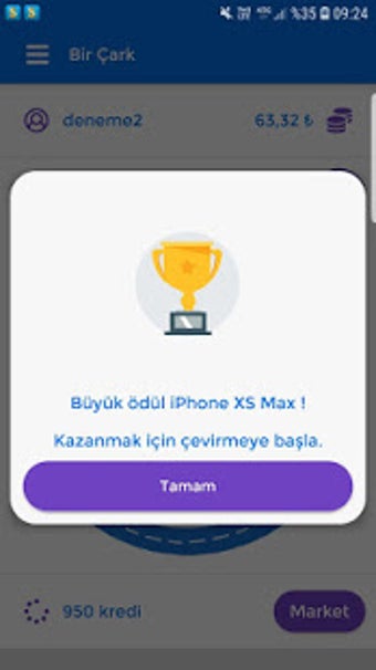 Bir Çark - Çevir Para Kazan Yeni Çarkıfelek Oyunu Android 9.0 ve üzeri sürümlerde mevcuttur. Yazılımın güncel sürümü 1.1.1 olup, sadece Türkçe olarak çalıştırabilirsiniz.